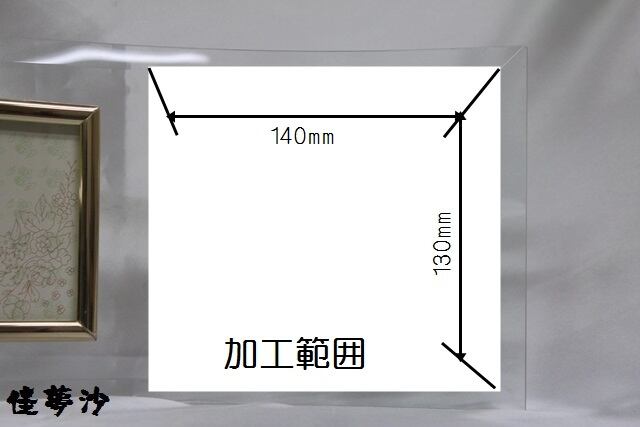 加工範囲は、写真のサイズと同じサイズで裏面から加工致します。